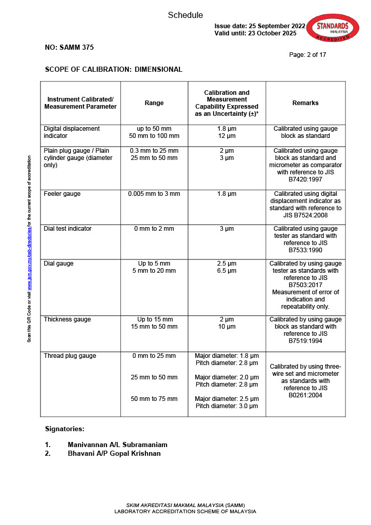 Our dimensional calibration services are fully accredited under ISO/IEC 17025, ensuring precise measurements and compliance with global standards.